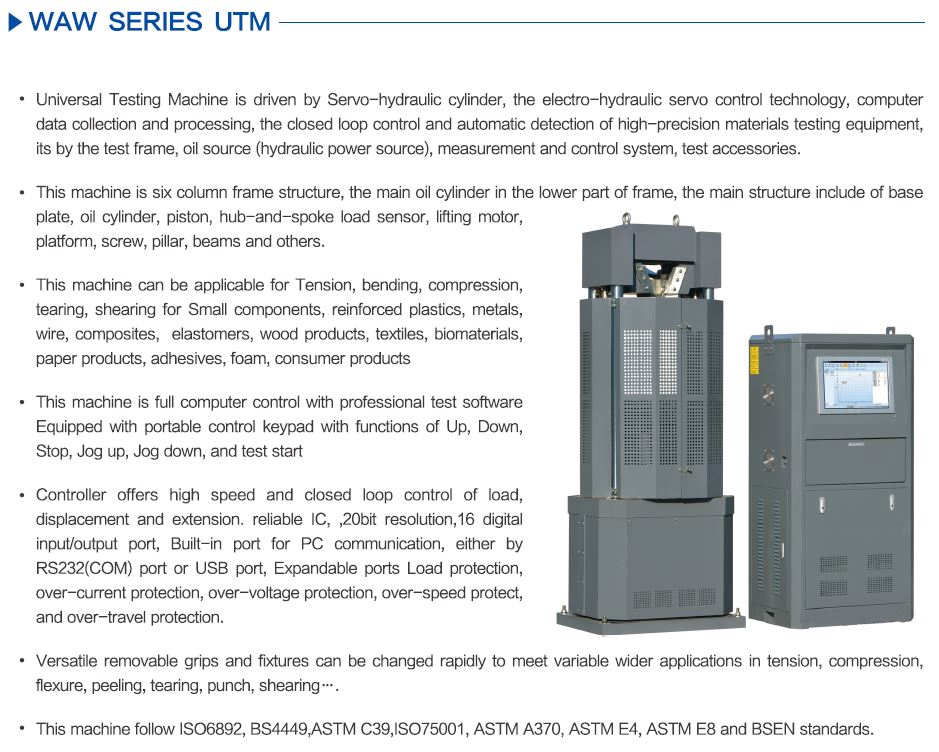 Home / Testing Equipment / METAL Testing UTM / WAW SERIES UTM WAW SERIES UTM Category: METAL Testing UTM Tag: metal UTM Description Description Related products METAL Testing UTM WDW SERIES UTM METAL Testing UTM เครื่องทดสอบแรงอเนกประสงค์ Universal Testing Machine (UTM) -TBTUTM-1000C สามารถตรวจวัดแรงสูงสุด 1000 กิโลนิวตัน